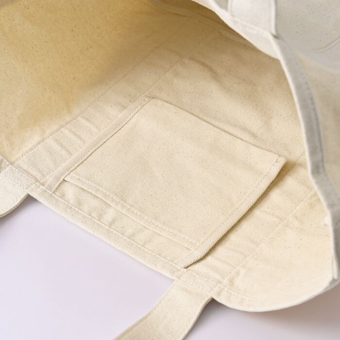 自立するように底面にはマチが施され、普段使いに耐えられるよう素材には厚手の生地を使用しています。